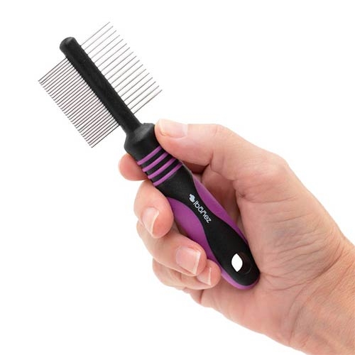 Speciální oboustranný hřeben 12 cm dlouhý. Jemnější strana 32 kovových krotů a hrubší 17. Délka hrotů 16 mm. Protiskluzná rukojeť Vám usnadní práci.