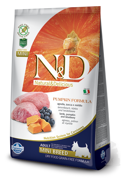 - N&D GF Pumpkin DOG Adult Mini Lamb & Blueberry 7kg