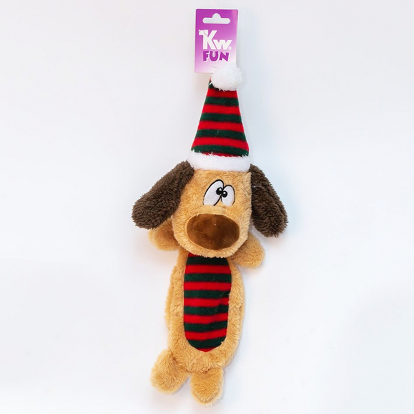 KW plyšový vánoční pejsek pískací, šustící. Celková délka hračky je 38cm.
