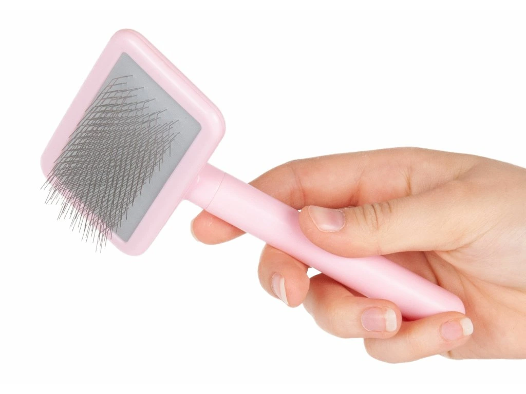 Profesionální lehký drátkový kartáč navržený pro efektivní rozčesávání zacuchané srsti. Drátky jsou jemně zahnuté, díky čemuž kartáč hladce projde srstí bez tahání.